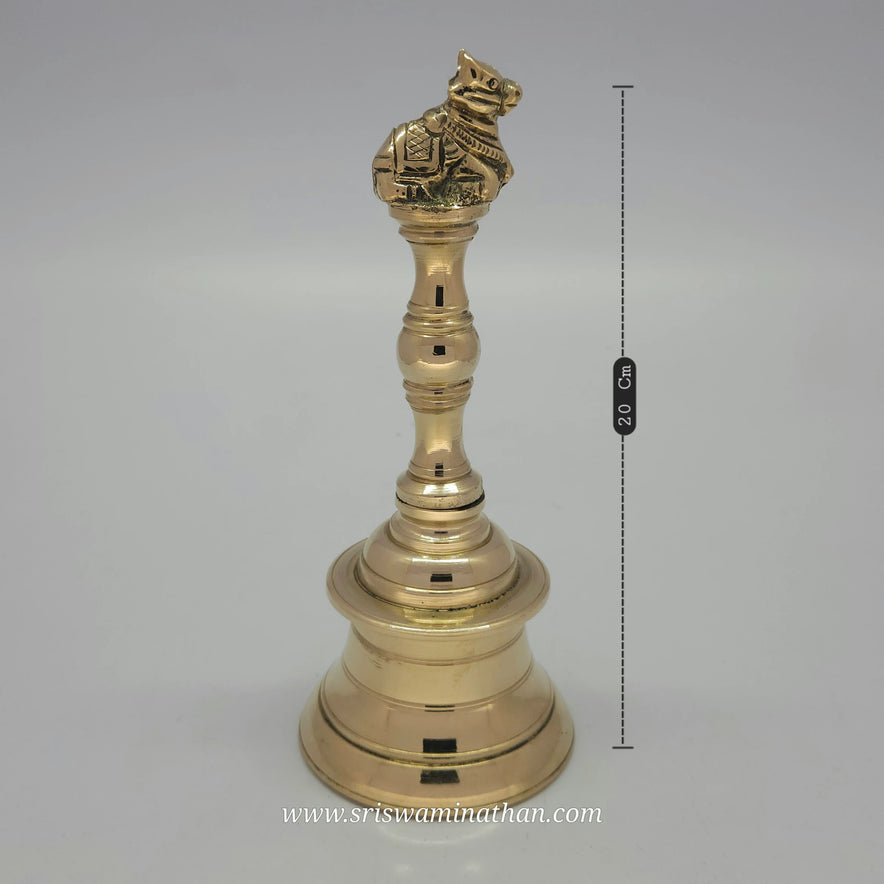Pure brass construction with traditional Nandhi motif, handcrafted by Tamil Nadu artisans who understand both devotion and acoustics.